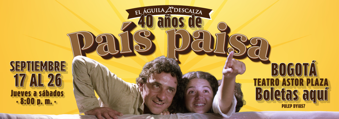 En 2026, El Águila Descalza celebra los 40 años de “País paisa”. Compra tus entradas y forma parte de los festejos por estos 40 años de risas, memoria e identidad.